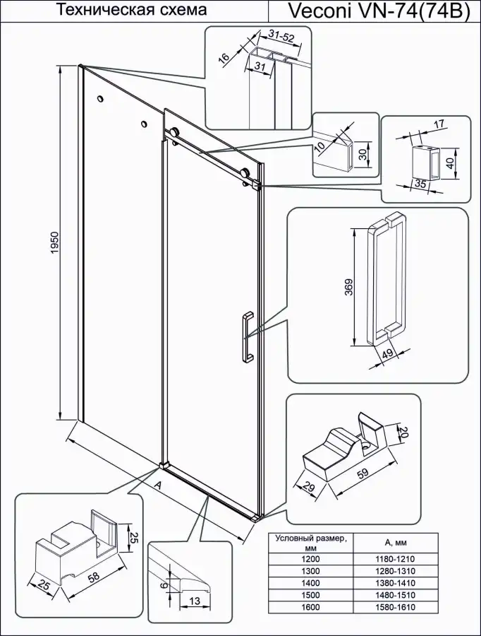 Вариант исполнения: Душевая дверь в нишу Veconi Vianno VN-74 120х195 см, VN74-120-01-C4 , профиль Хром,Прозрачное закаленное стекло 8 мм. Конструкция дверей - Раздвижная.