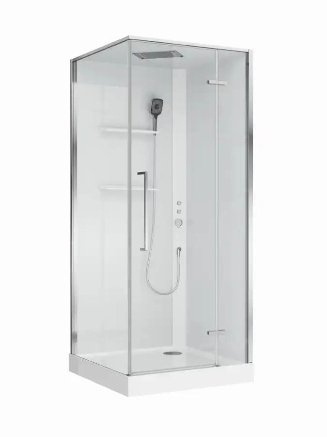 Кабина имеет компактные и удобные габариты — 900×900 мм по основанию и высоту 2125 мм, что позволяет ей вписаться даже в небольшое пространство стандартного санузла.