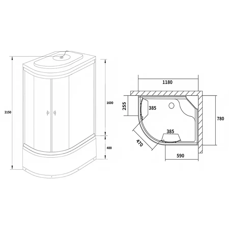 Душевая кабина Loranto 1180x780x2150 правосторонняя, белое заднее стекло, поддон 40 см, матовое стекло 4 мм, профиль белый (CS-887EDTM/W-120)
