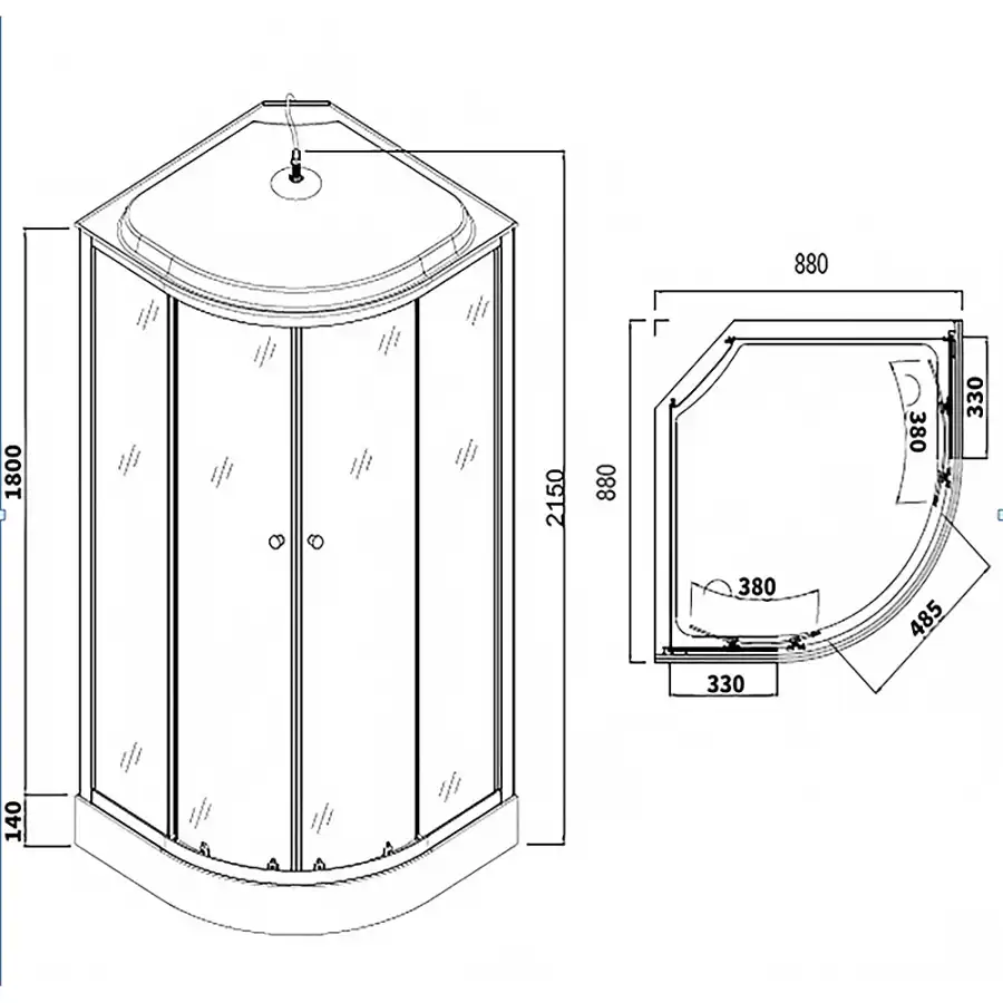 Душевая кабина Loranto 880х880х2150 белое заднее стекло, поддон 14 см, матовое стекло 4 мм, профиль белый (CS-881ED13TM/W-90)