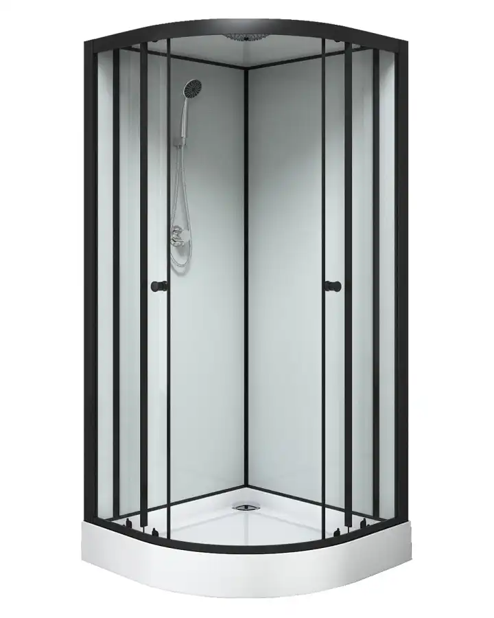 CS-22109 Душевая кабина 90x90x(190+15)см с низким поддоном 15см, прозрачное закаленное стекло 5 мм, задние стеклянные стенки БЕЛЫЕ, профиль черный-мат., верхний душ, хромированный ручной душ + шланг для душа + хромированный держатель (3 места) Безсиликоновая сборка