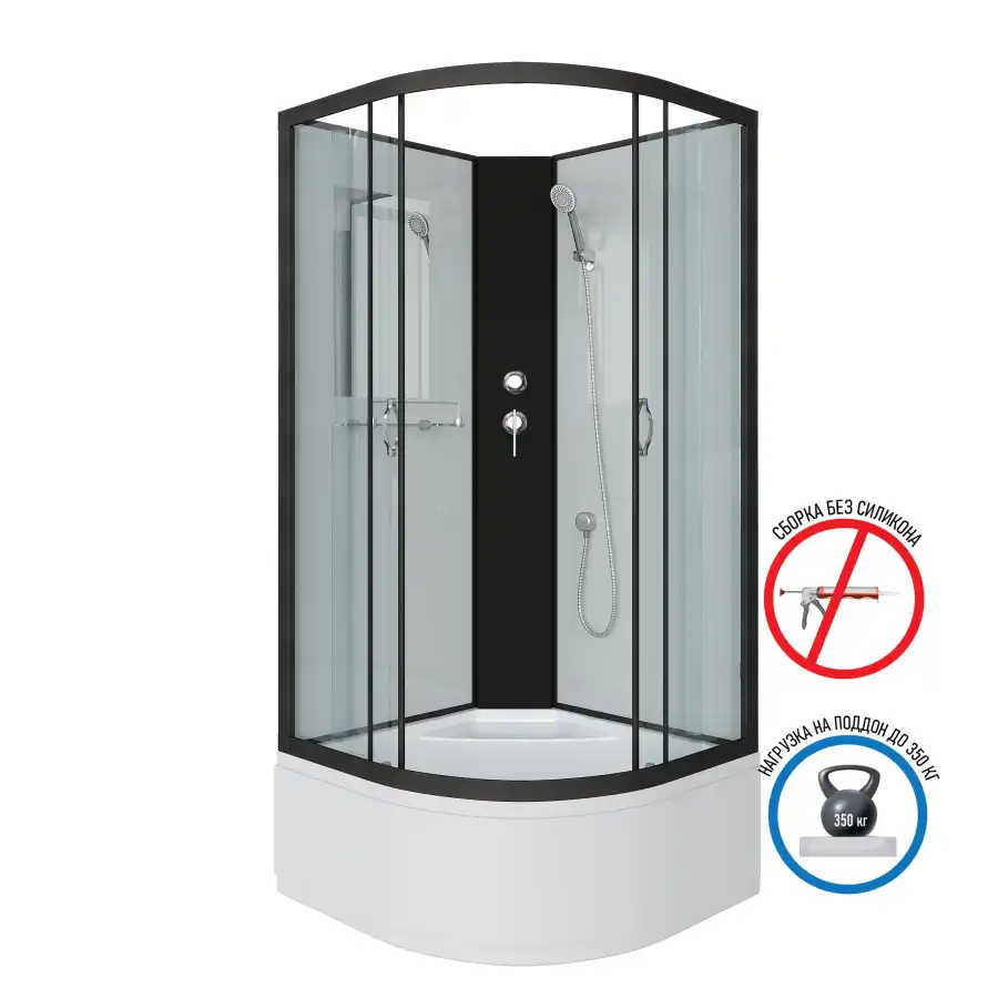 Душевая кабина Niagara Classic 100х100х200 NG-6709-14BK открытая без крыши, высокий поддон 45 см, профиль черный, стекло прозрачное, без гидромассажа. Артикул изделия 67091414BK.