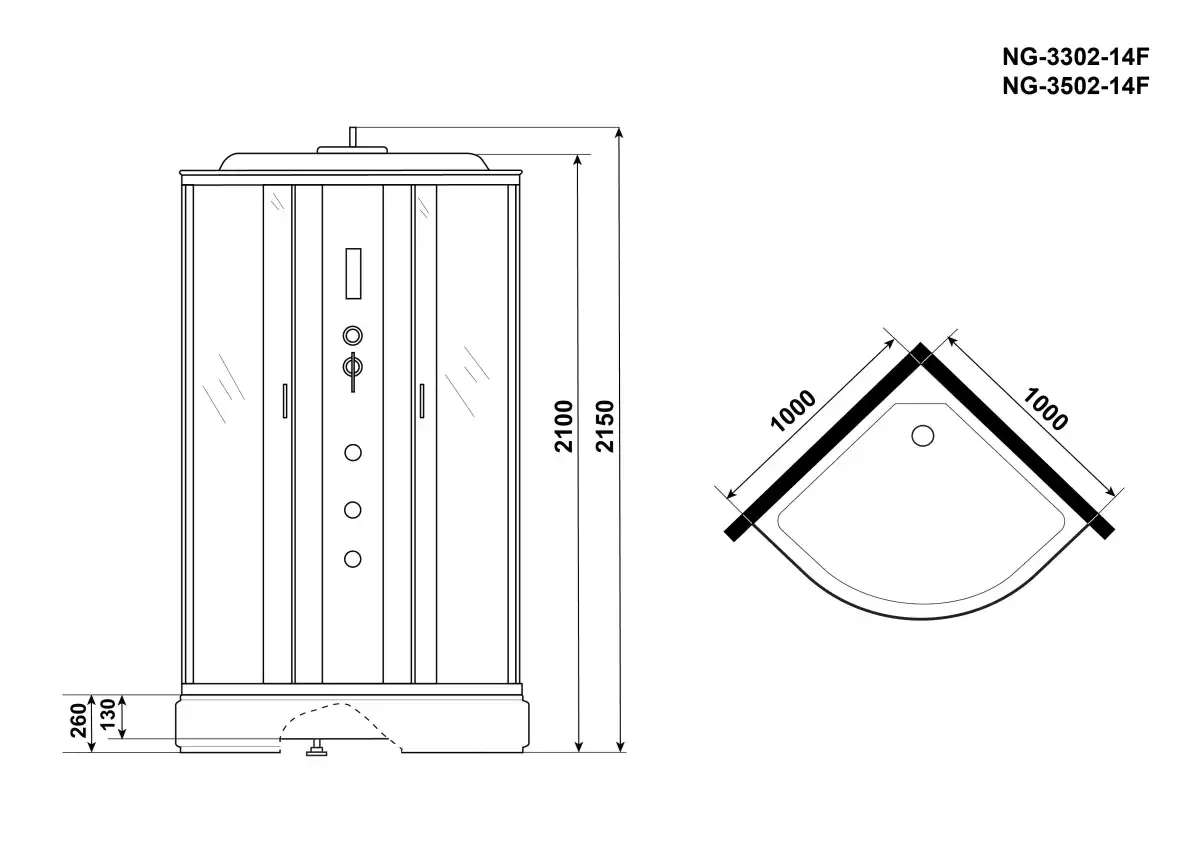 Душевая кабина Niagara Classic 100х100х215 NG-3302-14F(NG-3316-14) средний поддон, с гидромассажем, 33021424F