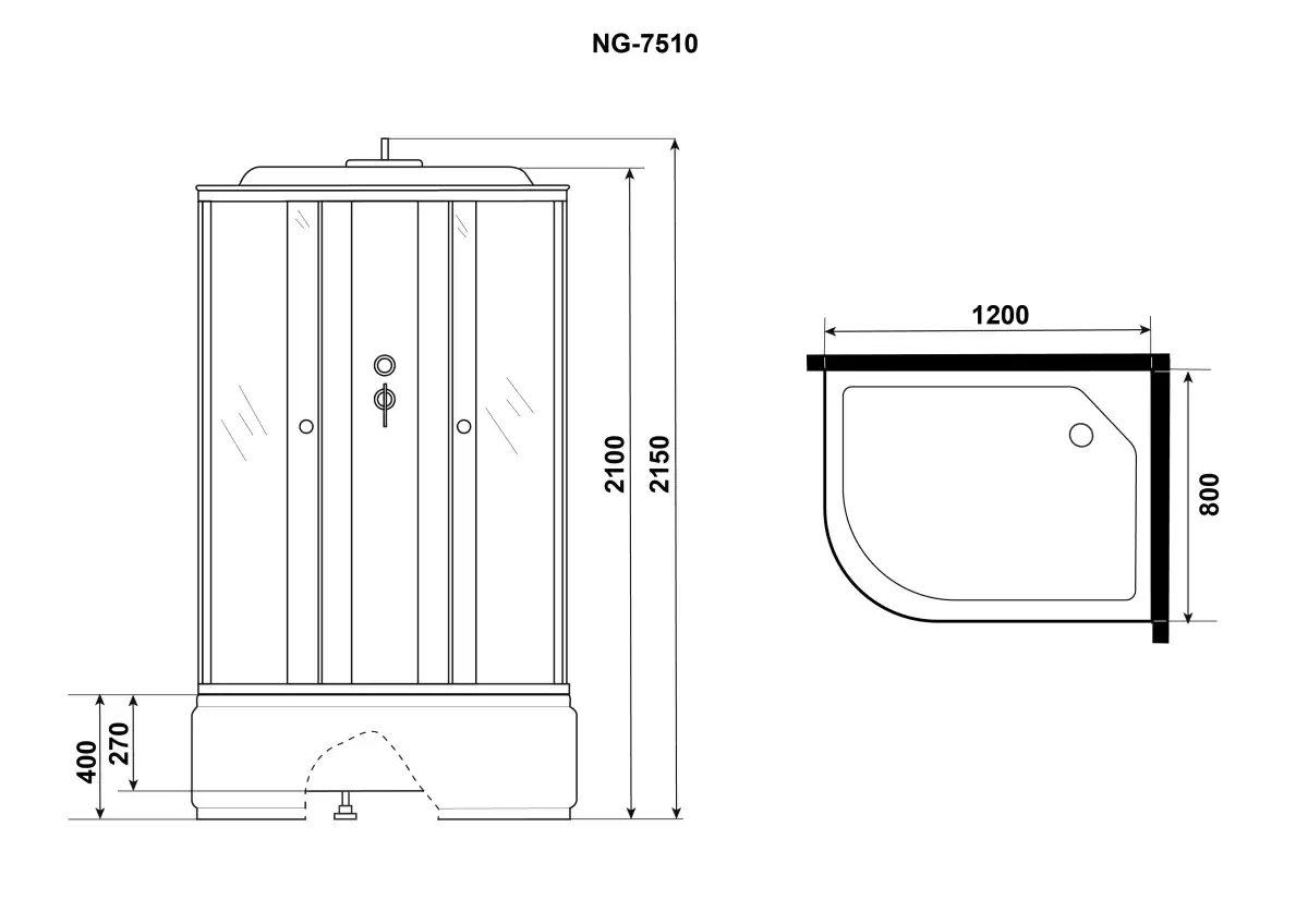Душевая кабина Niagara Eco 120х80х215 NG-7510-14R высокий поддон, без гидромассажа