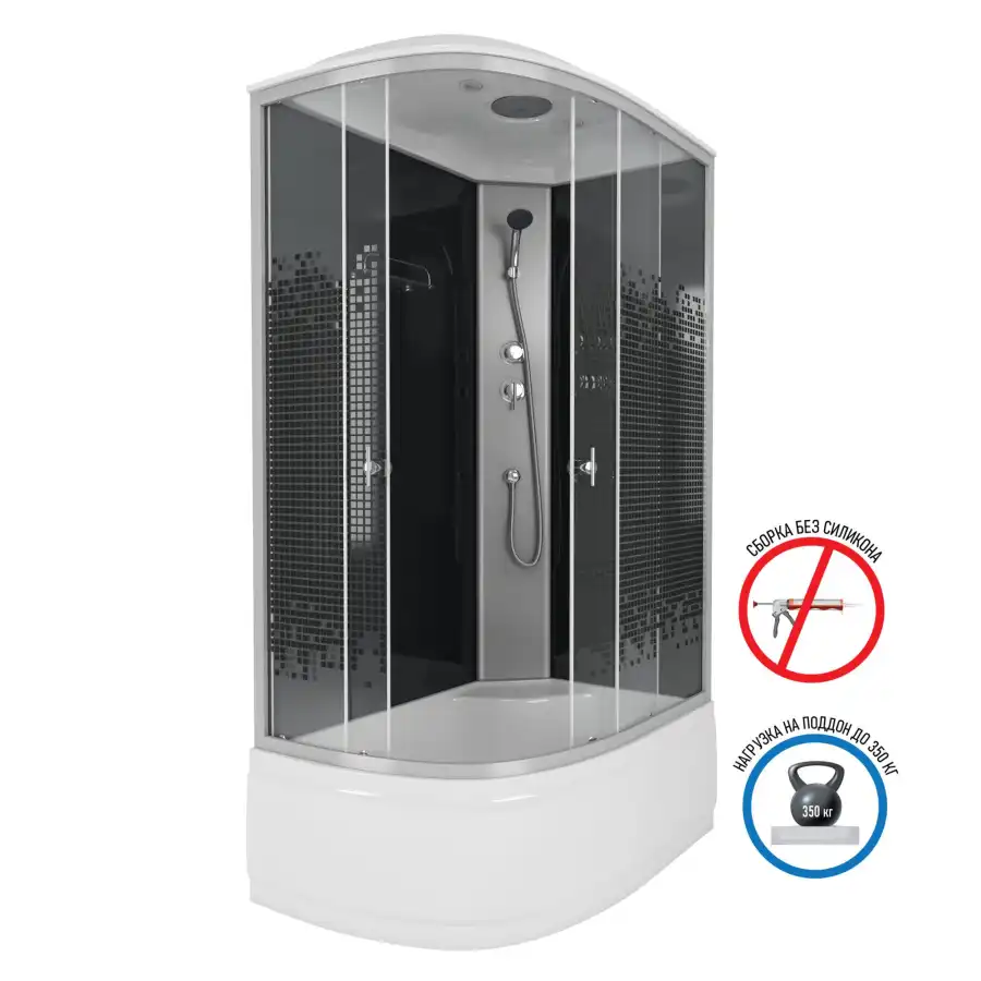 Душевая кабина Niagara Eco 120х80х215 NG-7510-14R закрытая c крышей, высокий поддон 40 см, профиль серебро, стекло прозрачное с мозаикой, без гидромассажа.