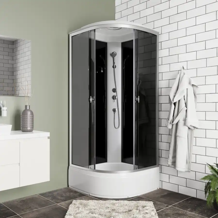 Душевая кабина Niagara Eco 90х90х215 E90/26/TN закрытая c крышей, средний поддон 26 см, профиль серебро, стекло тонированное, без гидромассажа.
