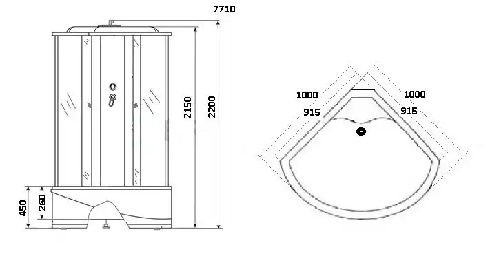 Душевая кабина Niagara Luxe 100х100х215 NG-7710W высокий поддон, с гидромассажем