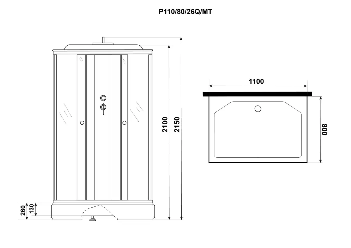 Душевая кабина Niagara Promo 110х80х215 P110/80/26Q/MT средний поддон, без гидромассажа