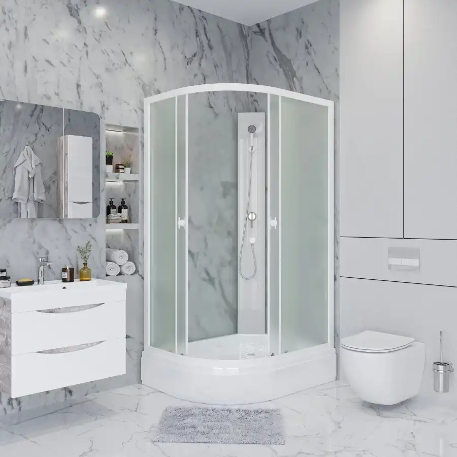 Душевая кабина Niagara Promo 90х80х200 P90/80/26R/MT/BK открытая без крыши, средний поддон 26 см, профиль белый, стекло матовое, без гидромассажа.