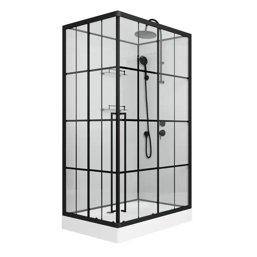 Душевая кабина Niagara Standart 100х80х225 ST100/80/15QR/KL/BKT открытая без крыши, низкий поддон 15 см, профиль черный, стекло прозрачное, без гидромассажа.