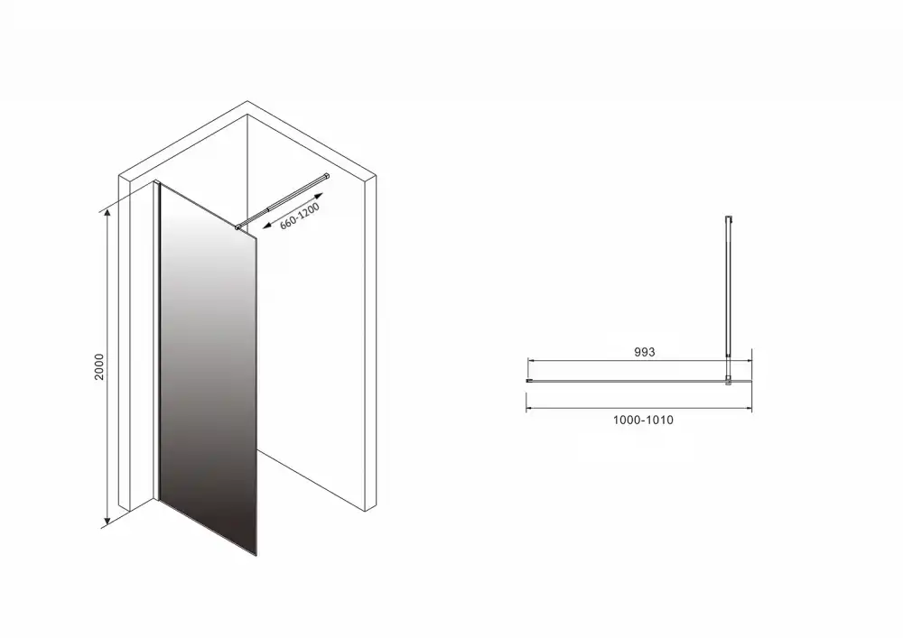 Душевая перегородка Abber Immer Offen 100 см, AG69101BD, профиль Черный, стекло Тонированное