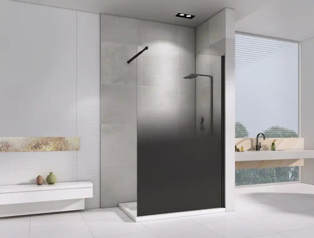 Вариант исполнения: Душевая перегородка Walk in Abber Immer Offen 100х200 см, AG69101BD , профиль Черный,Тонированное закаленное стекло 6 мм. Конструкция дверей - Неподвижная.