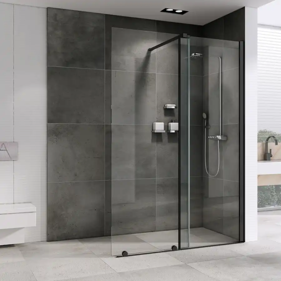 Вариант исполнения: Душевая перегородка Walk in Abber Komfort 100х200 см, AG09100B , профиль Черный,Прозрачное закаленное стекло 8 мм. Конструкция дверей - Раздвижная.