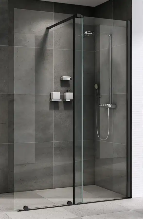 Вариант исполнения: Душевая перегородка Walk in Abber Komfort 120х200 см, AG09120B , профиль Черный,Прозрачное закаленное стекло 8 мм. Конструкция дверей - Раздвижная.
