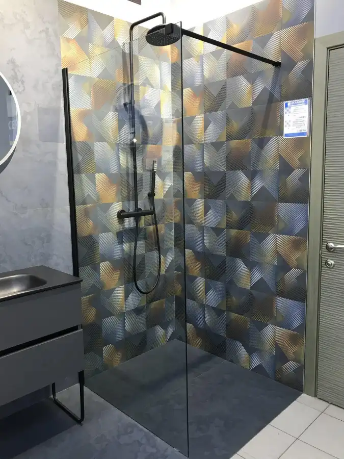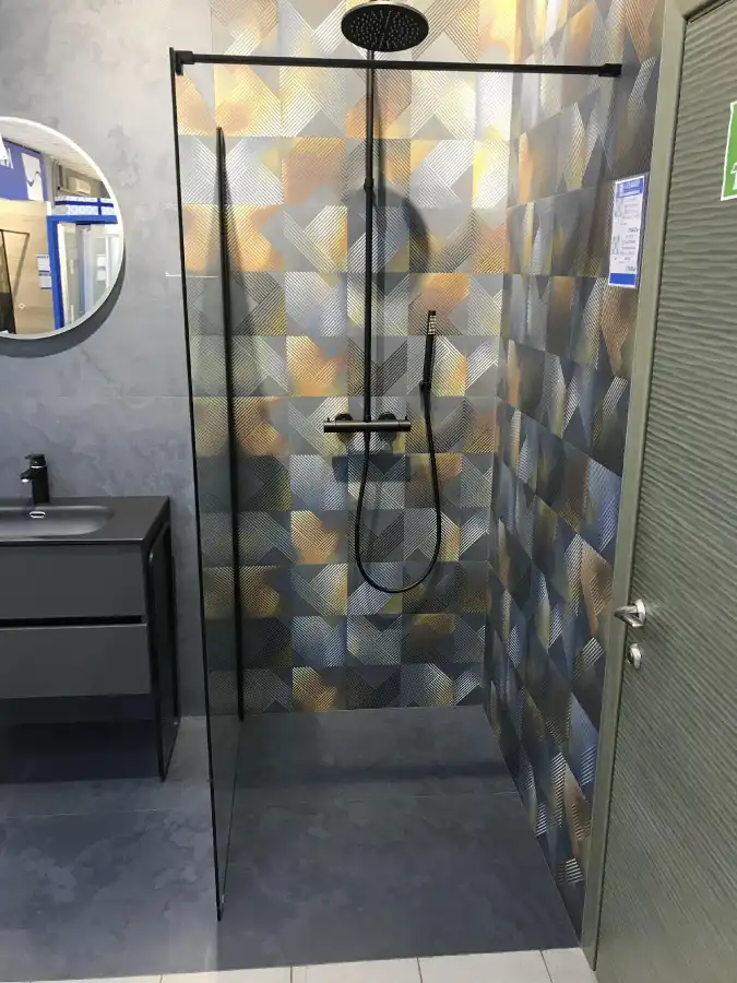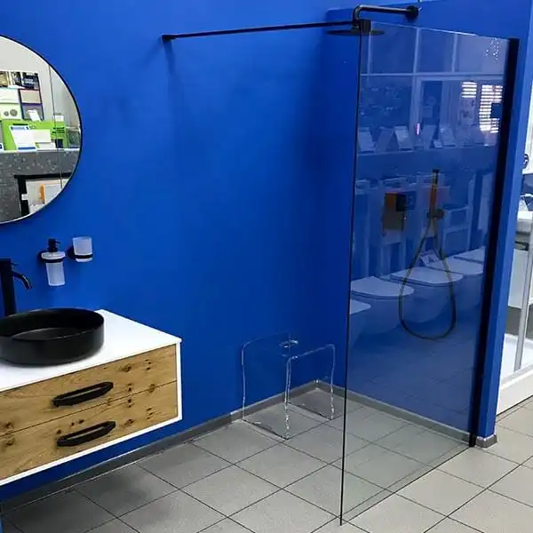 Душевая перегородка AVS Walk In 120 профиль черный, стекло прозрачное 8 мм. Тип открывания двери открытый вход, 803-0014-200-12-BM-T.
