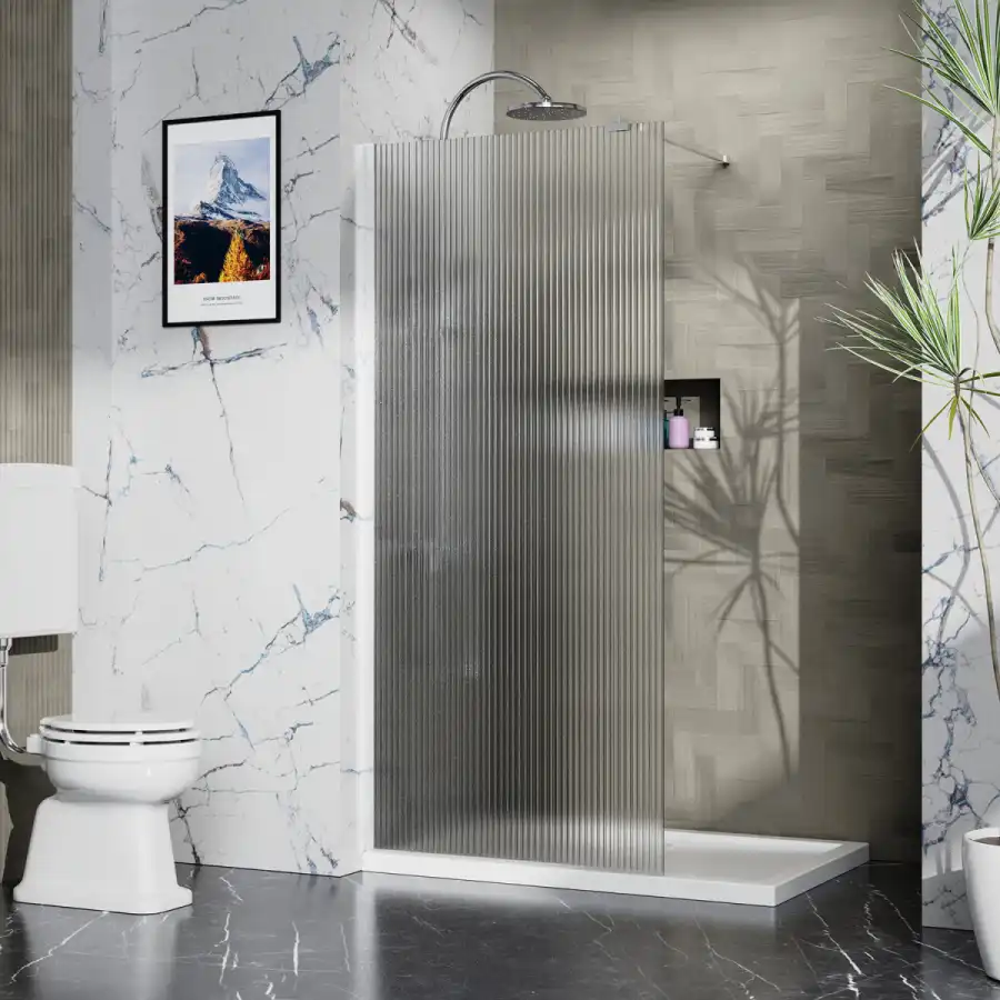 Минималистичная и современная душевая перегородка с универсальной установкой (L/R), телескопическим кронштейном и возможностью его регулировки до 1,2 м. Кронштейн выполнен из латуни в цвет профиля. Закаленное стекло представлено в рифленом исполнении и имеет толщину 8 мм. Профиль выполнен из анодированного алюминия.