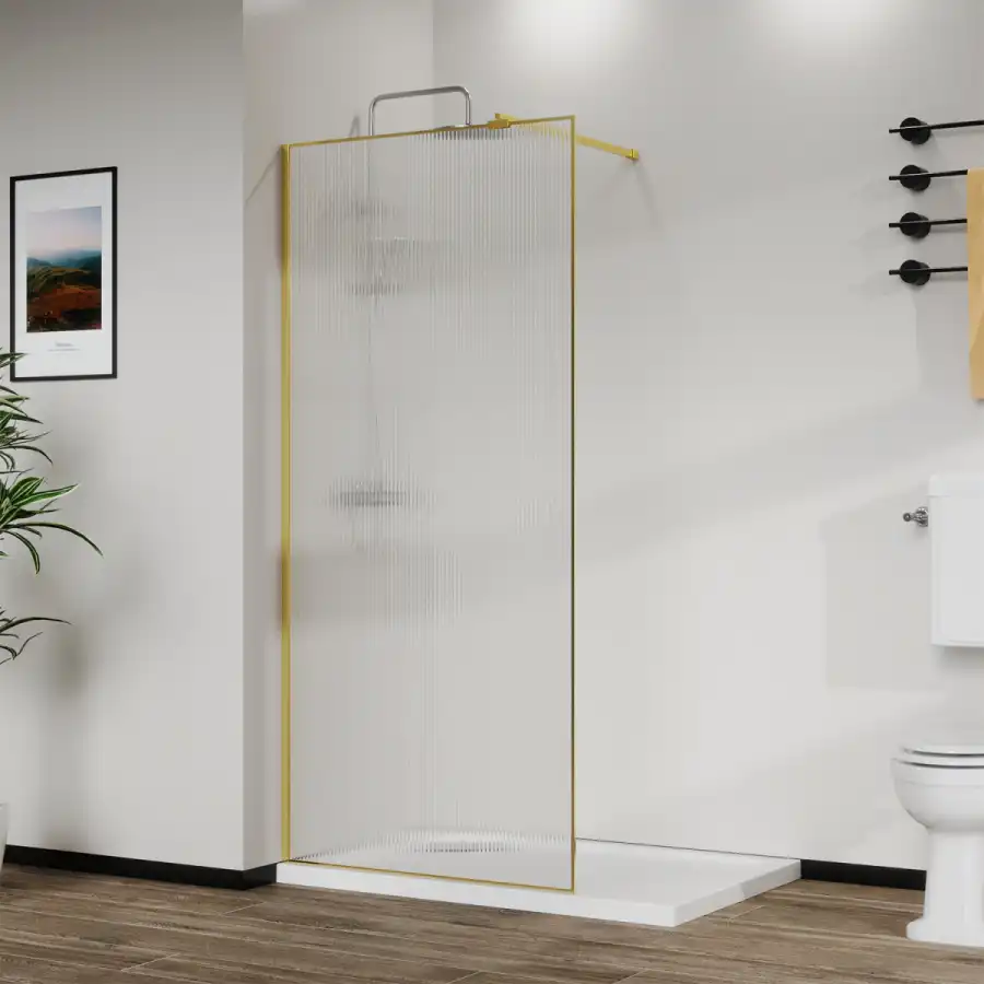 Душевая перегородка Azario Walk-in 90 AZ-271-90-BGL-CRF стекло 8 мм рифленое, профиль Золото матовое