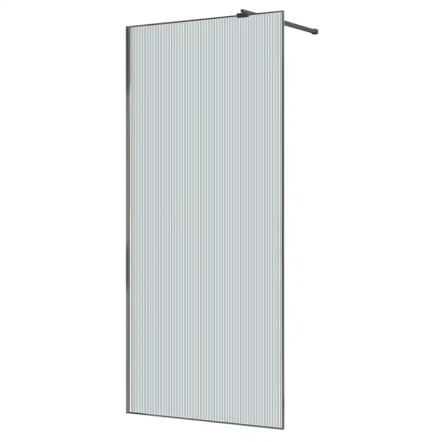Современная душевая перегородка с универсальной установкой (L/R), телескопическим кронштейном и возможностью его регулировки до 1,2 м. Кронштейн выполнен из латуни в цвет профиля. Закаленное стекло представлено в новейшем варианте: Рифленое стекло. Имеет толщину 8 мм. Профиль выполнен из анодированного алюминия.