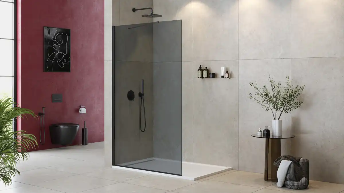 Душевая перегородка универсальная LIBERTA-L-1-TB-120-GR-NERO профиль Черный, Тонированное (графит) стекло 8 мм. Конструкция дверей - Неподвижная.