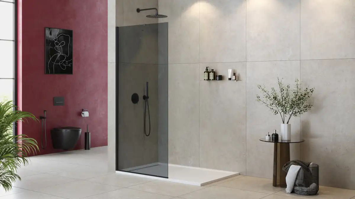 Душевая перегородка универсальная LIBERTA-L-1-TB-80-GR-NERO профиль Черный, Тонированное (графит) стекло 8 мм. Конструкция дверей - Неподвижная.