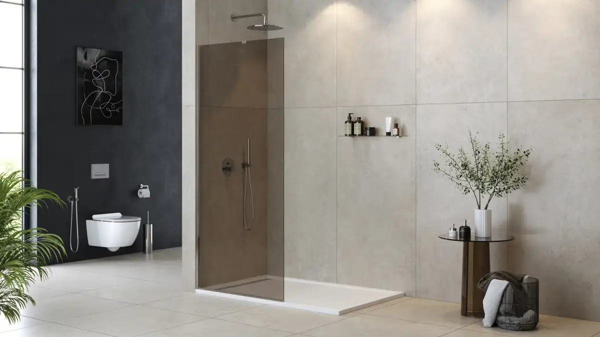 Душевая перегородка универсальная LIBERTA-L-1-TB-90-BR-Cr профиль Хром, Tонированная бронза стекло 8 мм. Конструкция дверей - Неподвижная.