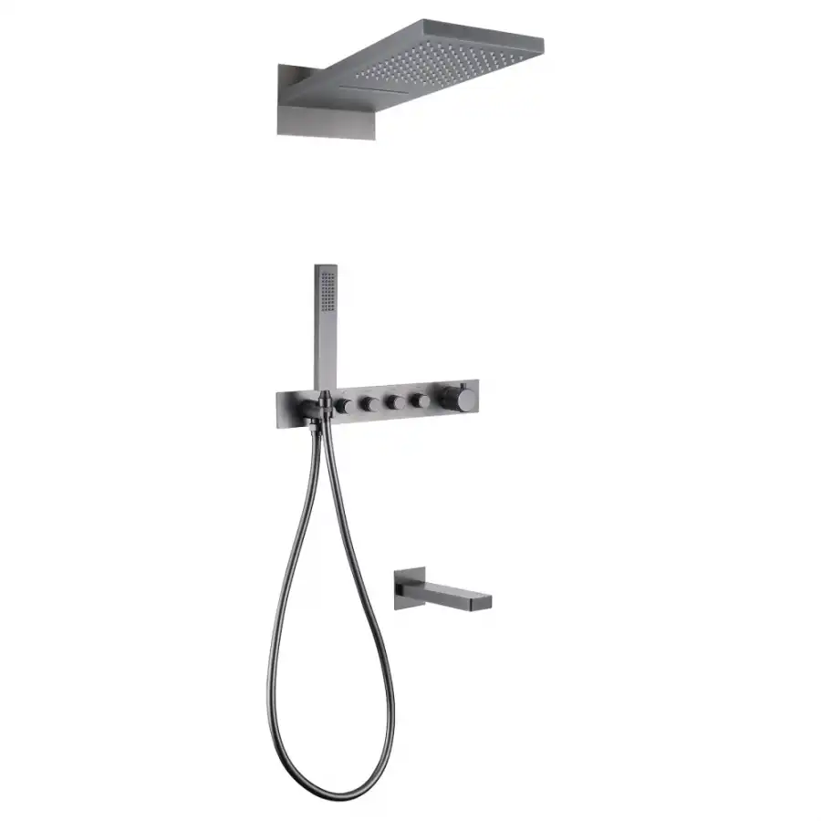 Душевая система ABBER Rund AF8753NG скрытого монтажа с изливом, термостат, никель.