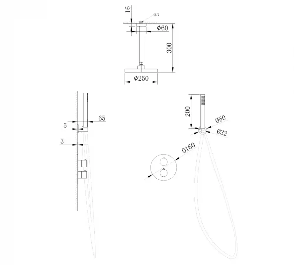 Душевая система ABBER Wasser Kreis AF8121B скрытого монтажа без излива, черная матовая