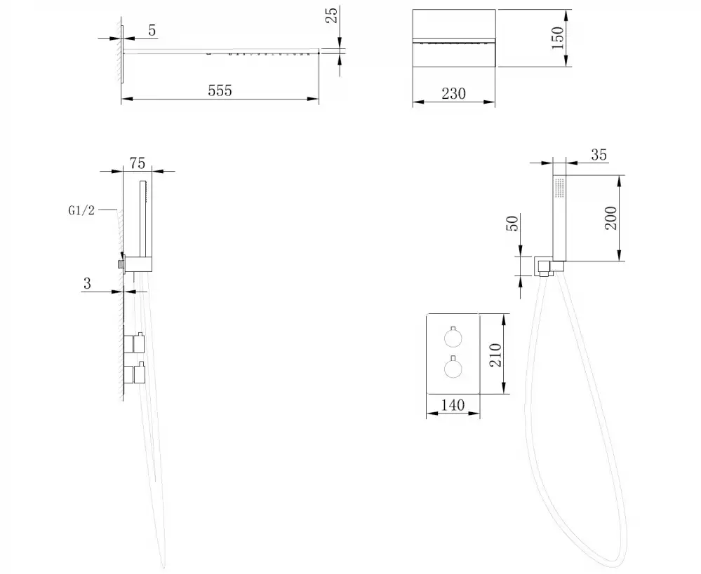 Душевая система ABBER Weiss Insel AF8052B скрытого монтажа без излива, термостат, черная матовая.