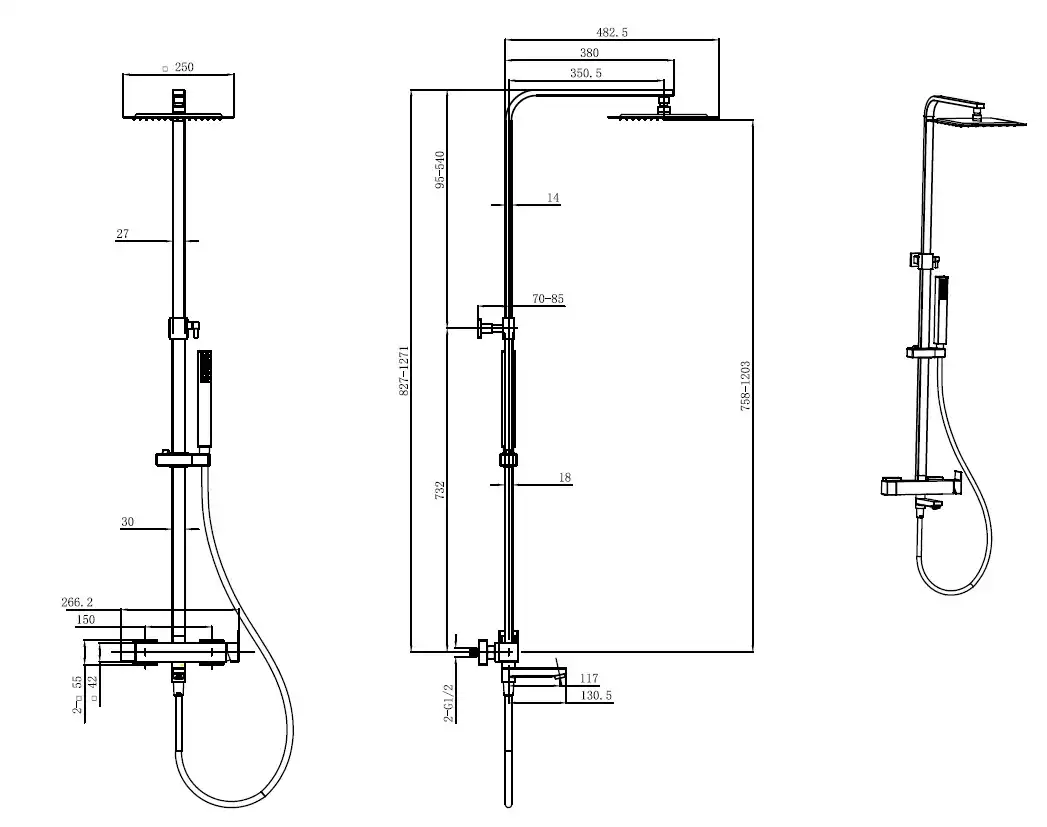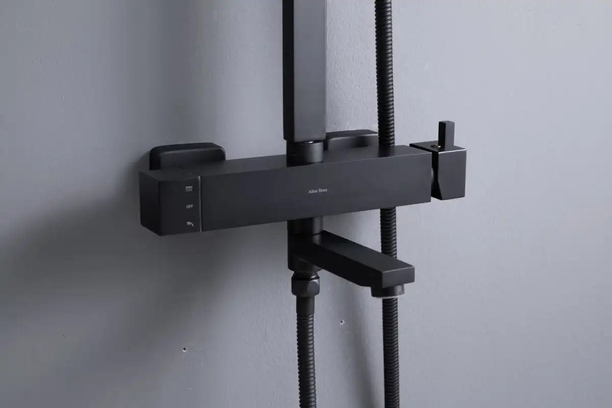 Душевая система Allen Brau Infinity 5.21029-31 для ванны с изливом, верхний и ручной душ, Черный матовый