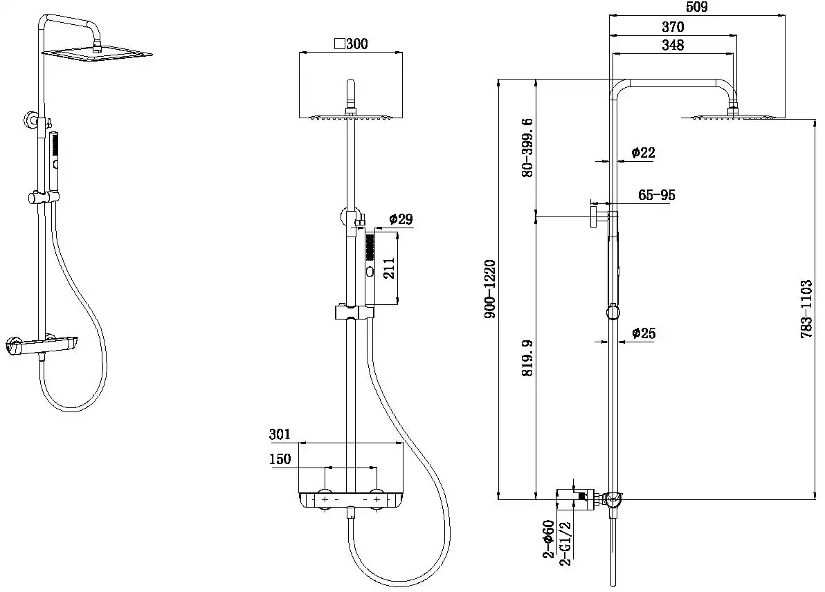 Душевая система Allen Brau Infinity 5.21032-31 с термостатом, черный матовый.