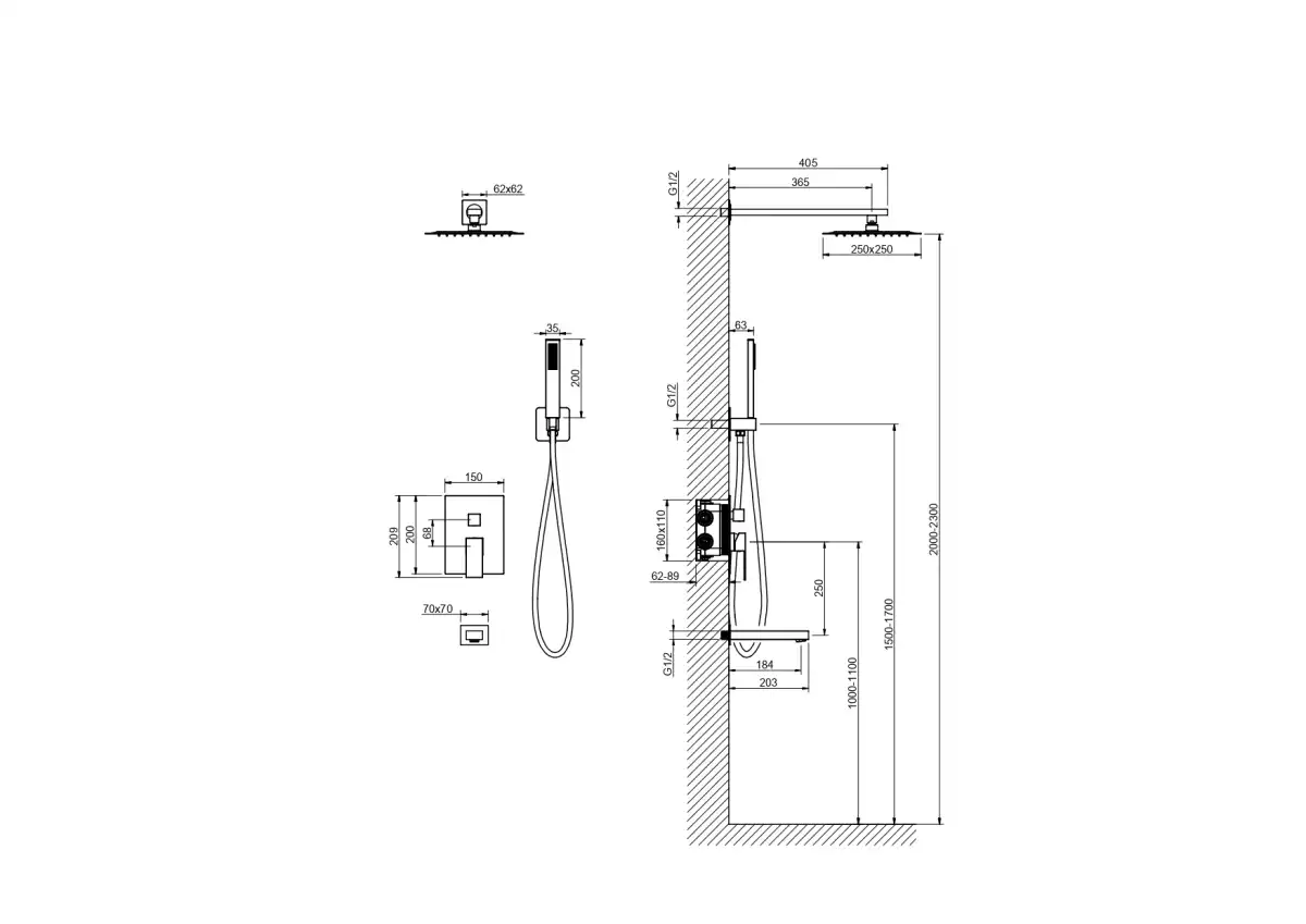 Душевая система Set 4 в 1, душевой комплект AQUATEK, матовый черный AQ1673MB ЛИБРА