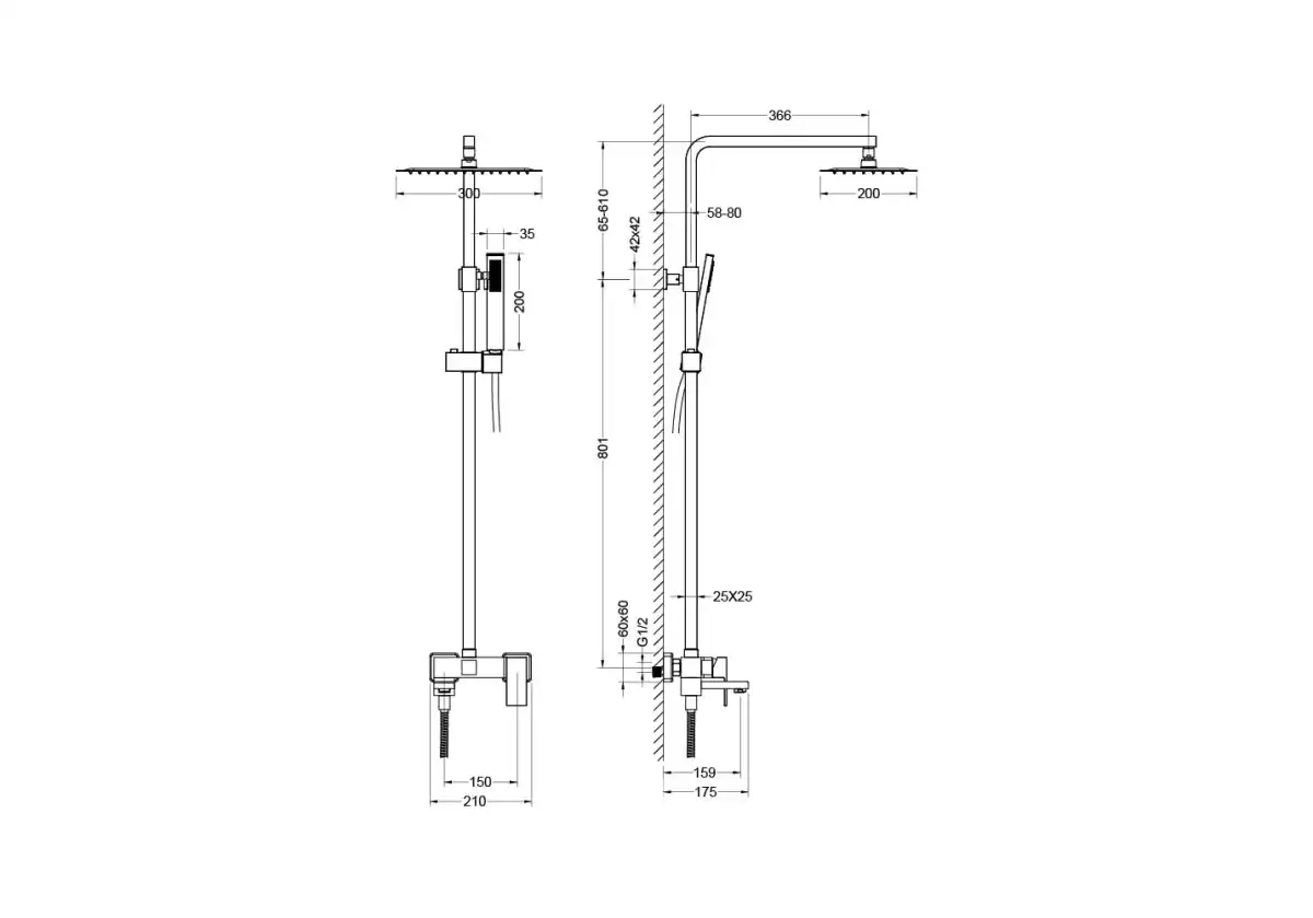Форма верхнего душаПрямоугольная