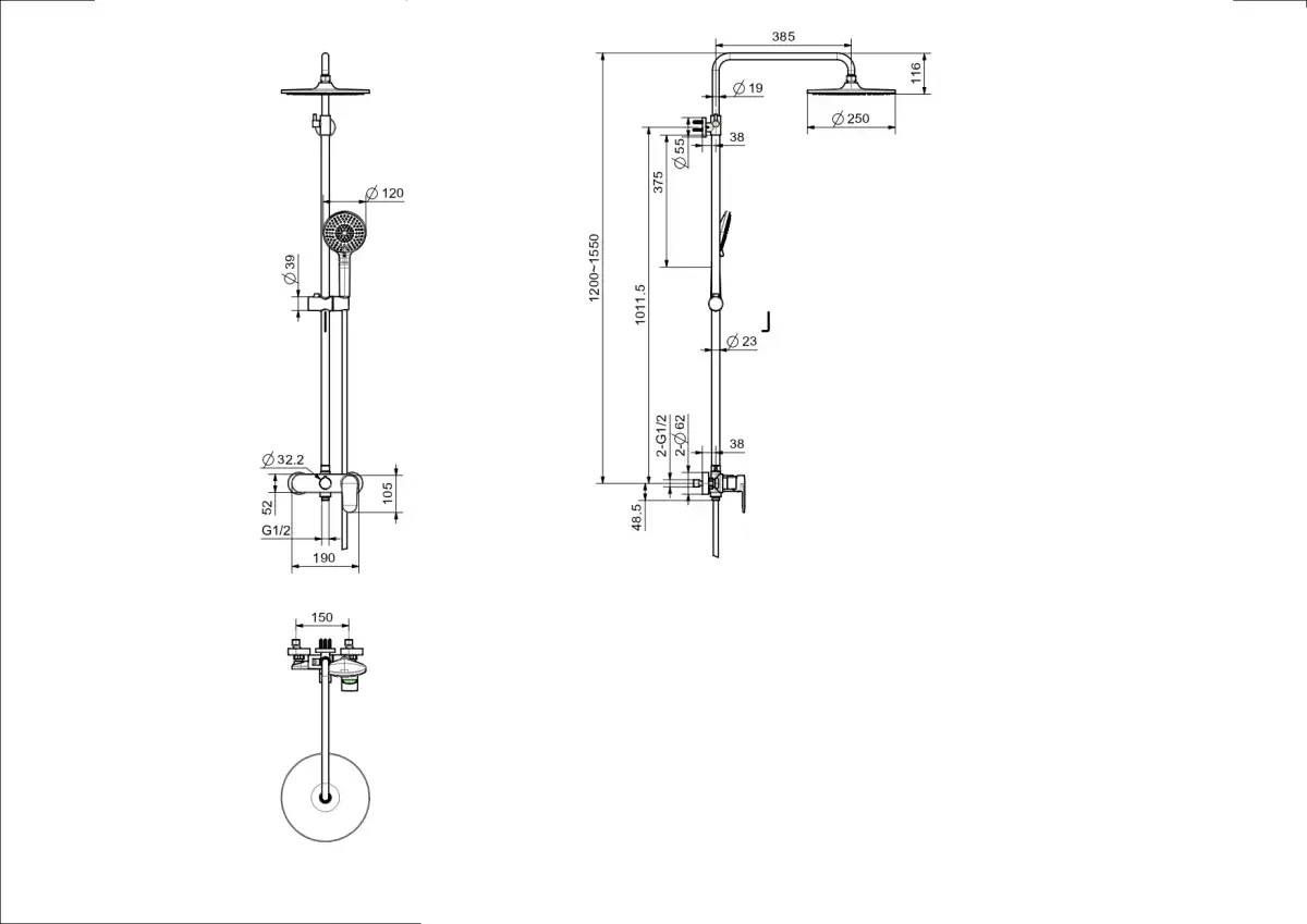 AQ2860MB НИКА душевая система (смеситель для душа) 3 jet 250 мм, матовый черный