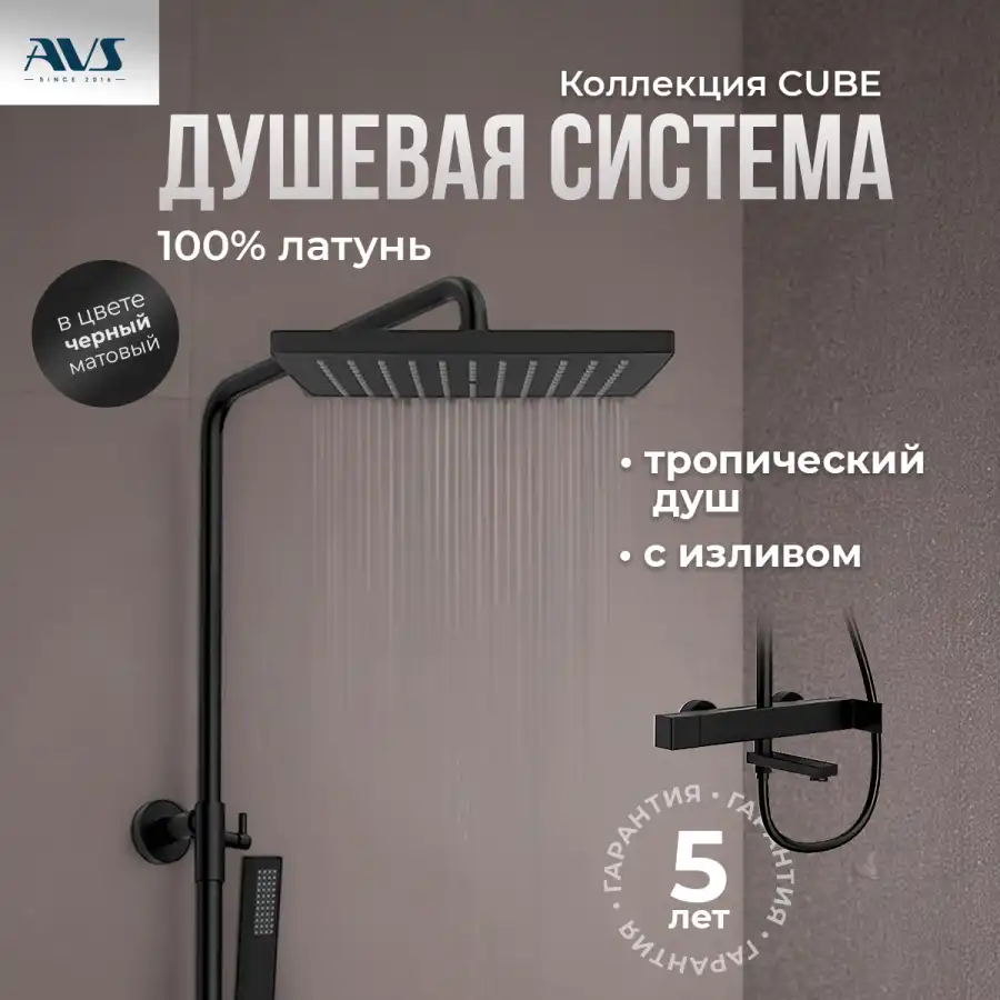 Душевая система AVS Cube 811-222-MB, черный матовый
