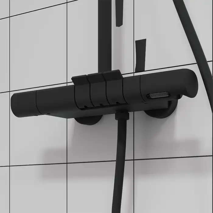Современная душевая система SpaHome в трендовом черном цвете, где собраны топовые технологии для самого комфортного принятия душа и ванны: клавишное управление, термостат, тропический верхний душ, большая ручная лейка, излив. • Термостат поддерживает выбранный температурный режим, что важно для безопасности детей и пожилых людей. Плюс настроив температуру один раз, не придется сливать лишние литры и платить за них. • 3 выхода для воды: излив, верхняя лейка, ручная лейка. Каждый из них включается мягким нажатием клавиши – как по отдельности, так и одновременно. • Напор воды регулируется той же клавишей: чем ниже опущена клавиша, тем он сильнее. • Скрытый в корпусе излив позволит наполнить ванну или набрать емкость с водой. • Минималистичный дизайн смотрится лаконично и стильно. • В комплекте: верхняя лейка 260х260х65 мм, ручная лейка с 3 режимами 270х125 мм, гладкий душевой шланг 1,5 м. Гарантия на смеситель – 10 лет, на душевые аксессуары – 3 года. (с) Авторский текст, сентябрь 2023 г.