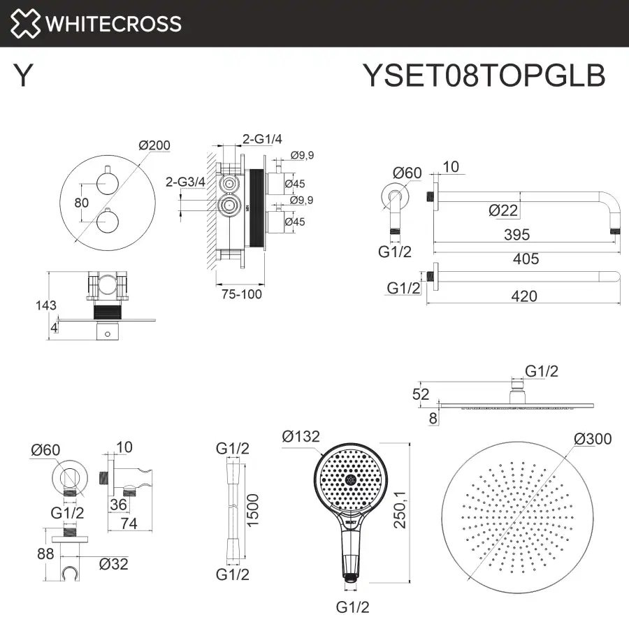 Термостатическая душевая система для душа, скрытого монтажа WHITECROSS Y brushed gold, Золото брашированное, YSET08TOPGLB
