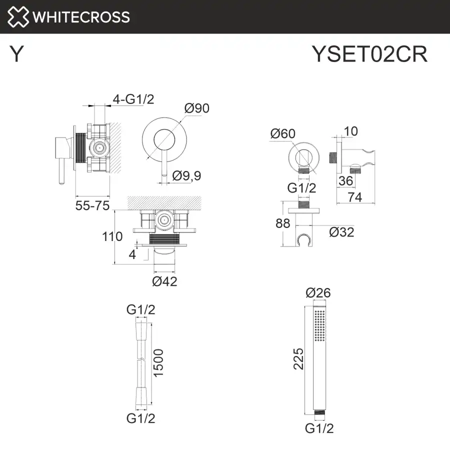 Душевая система для душа, скрытого монтажа WHITECROSS Y chrome, Хром, YSET02CR