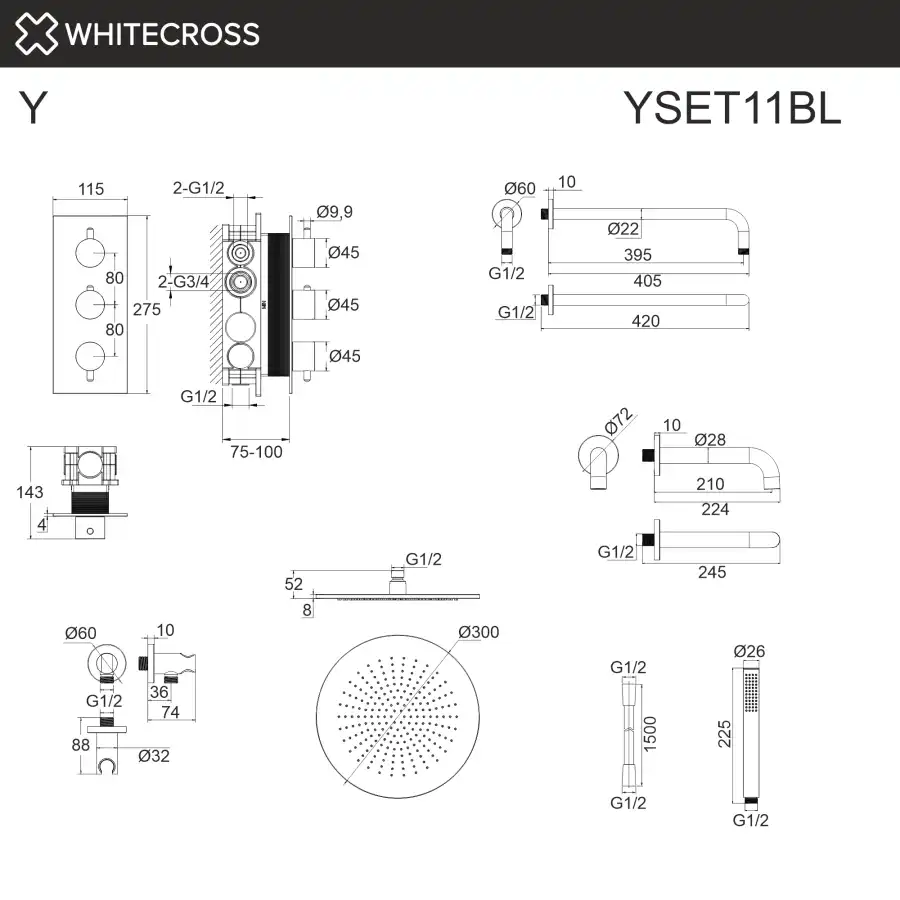Душевая система для ванны, скрытого монтажа WHITECROSS Y black, Черный матовый, YSET11BL