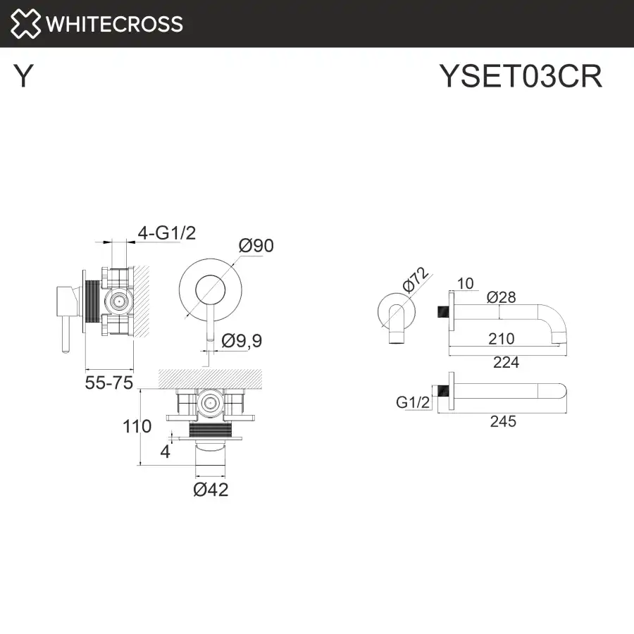 Душевая система для ванны, скрытого монтажа WHITECROSS Y chrome, Хром, YSET03CR