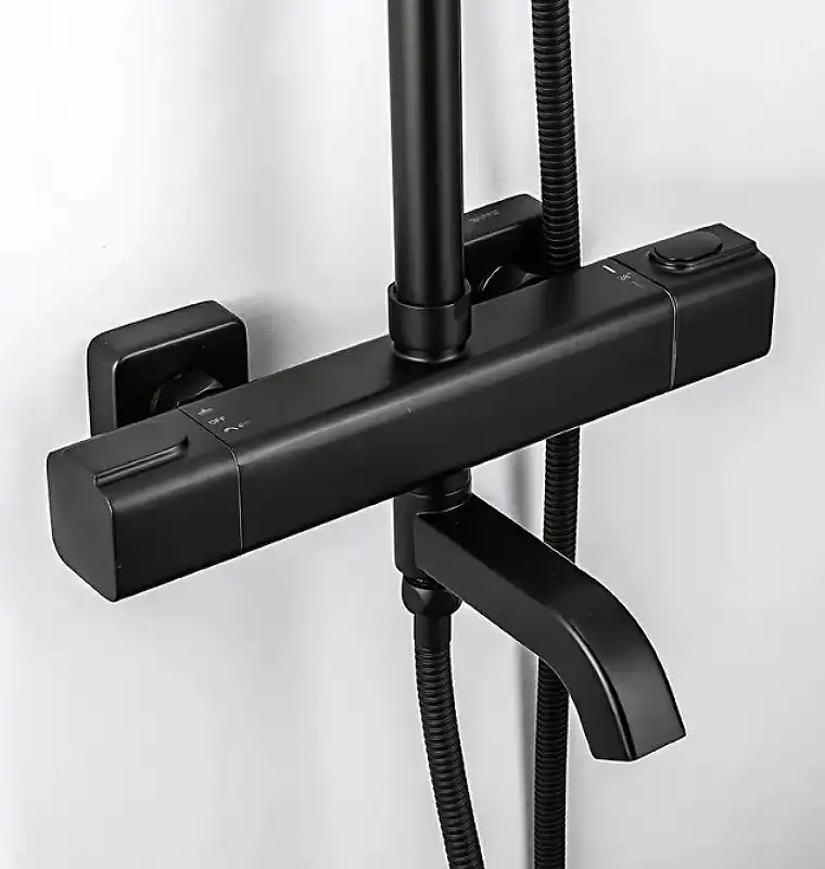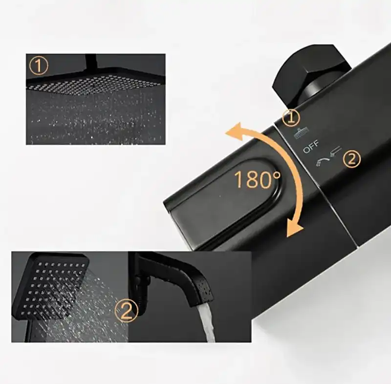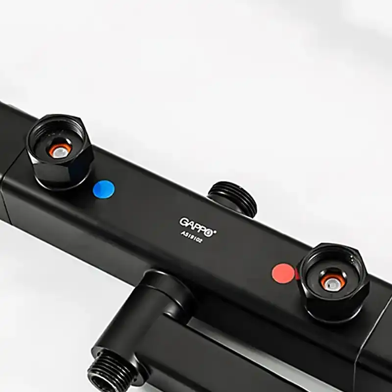 Душевая система Gappo G2491-6 с тропическим душем и термостатом, Черный матовый.