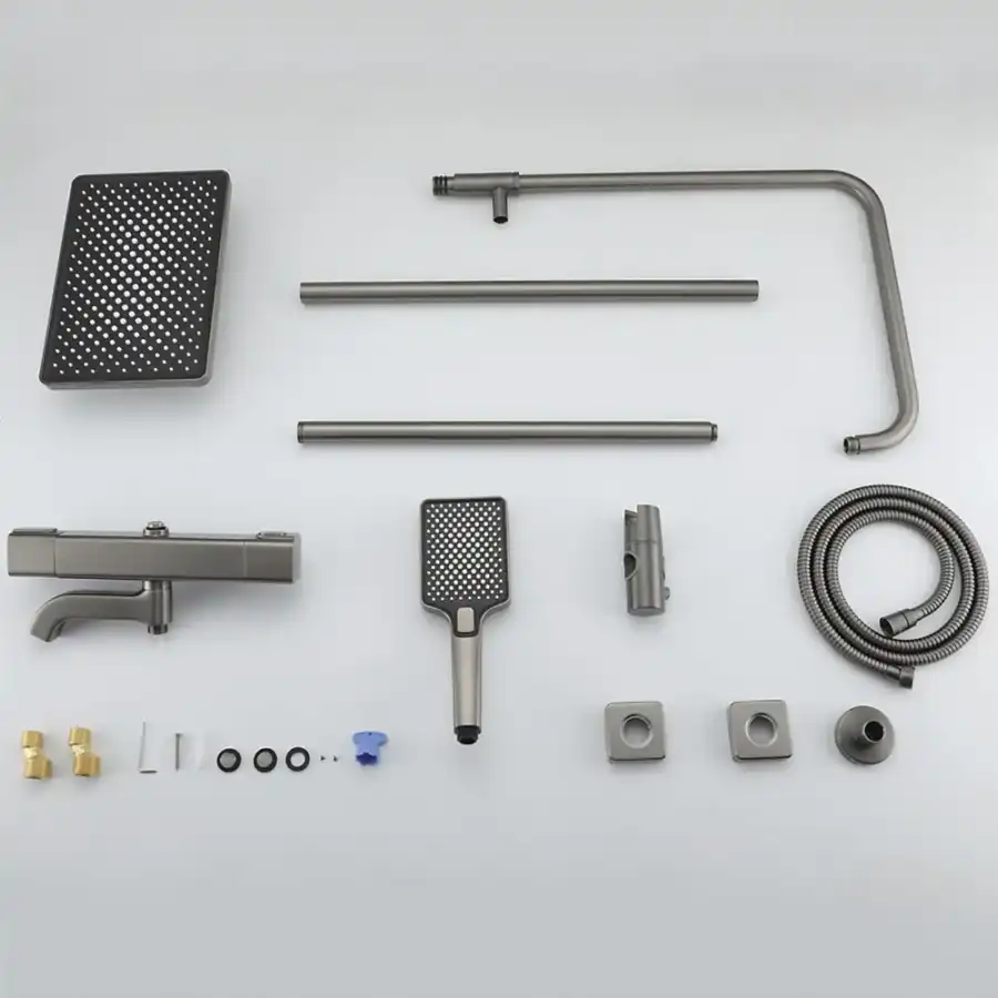 Душевая система Gappo G2491-9 с тропическим душем и термостатом, Оружейная сталь.