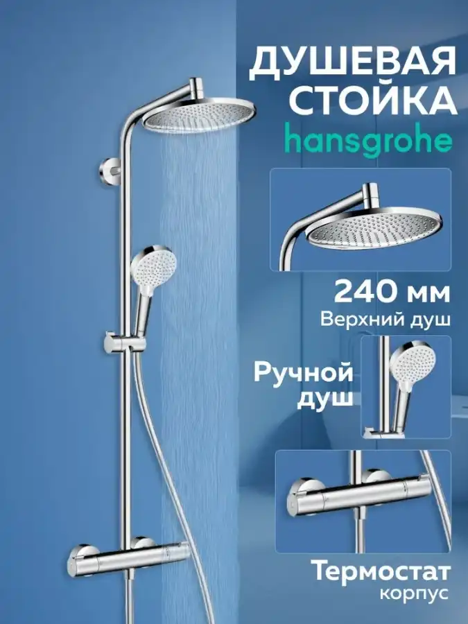 Душевая система Hansgrohe Crometta S 240 1jet Showerpipe с термостатом 27267000, хром
