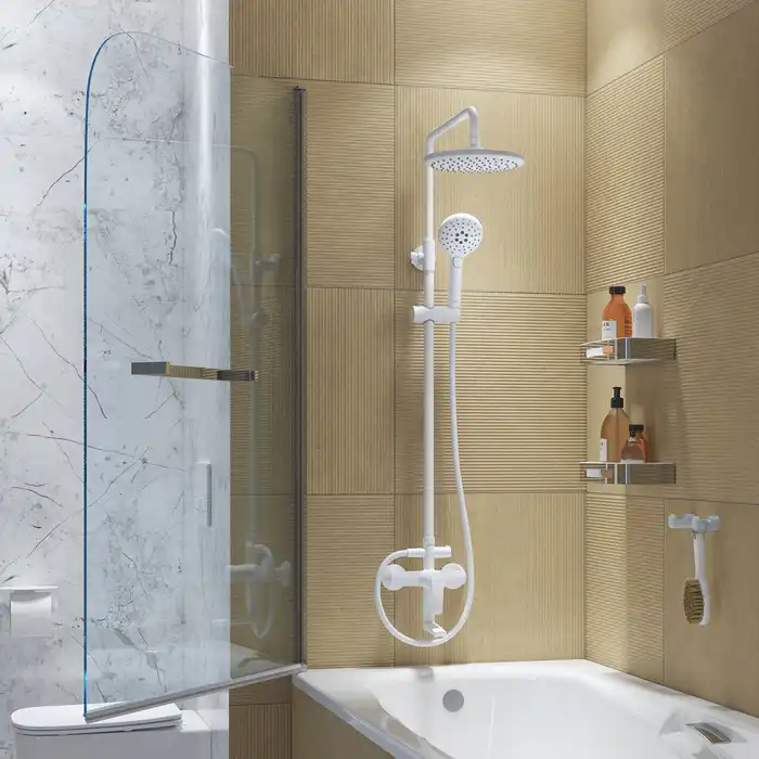 Смеситель с верхним душем из коллекции Ray в стильном белом матовом цвете – привлекательное, современное и практичное решение, которое будет органично сочетаться с любым дизайном ванной. • Керамический дивертор на стойке надежно и плавно переключает поток воды на верхнюю душевую лейку (?225 мм), трехрежимную ручную лейку (?110 мм) и поворотный излив. • Регулируемая высота стойки (от 800 до 1200 мм) позволяет принимать душ с комфортом даже самым высоким. • В комплекте душевые аксессуары: ручная лейка с держателем и гибкий шланг (1,5 м) для душа. • Смеситель прослужит долго благодаря надежному корпусу из прочной латуни, стойкому к коррозии, резким изменениям давления и перепадам температуры воды. • Цветное покрытие устойчиво к появлению царапин и выцветанию. На протяжении многих лет смеситель будет выглядеть как новый. Гарантия на смесители IDDIS® – 10 лет, на душевые аксессуары – 3 года. (с) Авторский текст, март 2023 г.