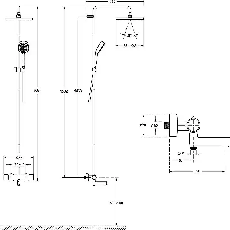 E26237-CP ATOM Колонна для ванны и душа с термостатом, поворотным изливом, круглым верхним и ручным душем, хром