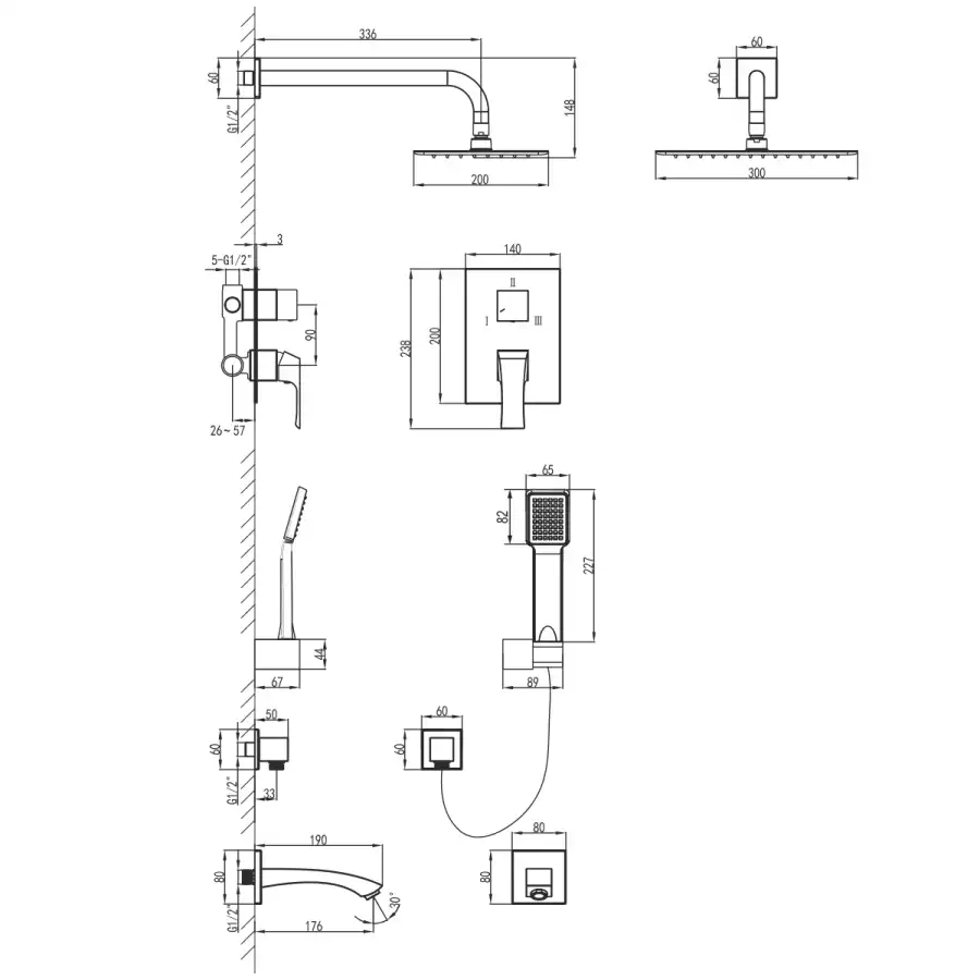 Встраиваемый смеситель с верхним душем 30х20 см, длина излива 18 см, латунь/хром