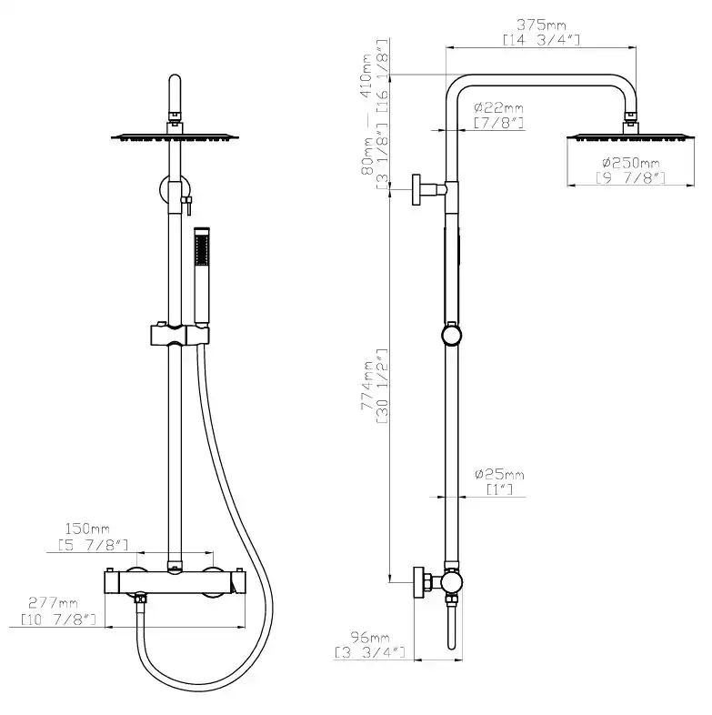 Размер верхнего душа (см)D25