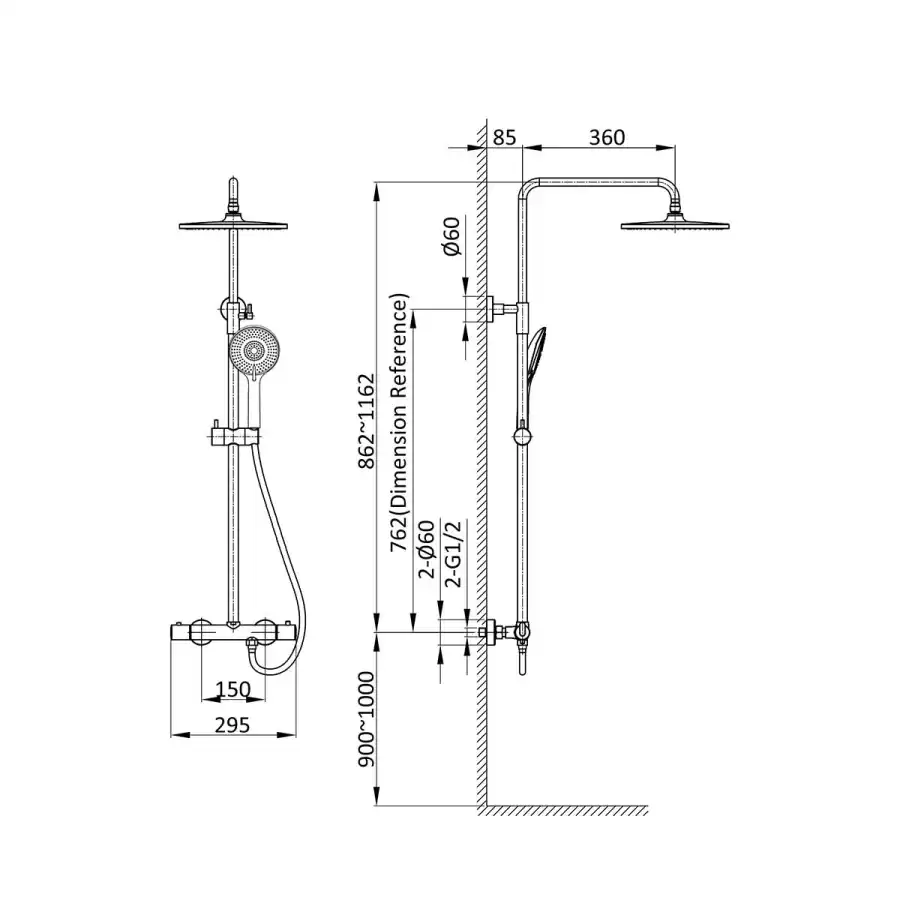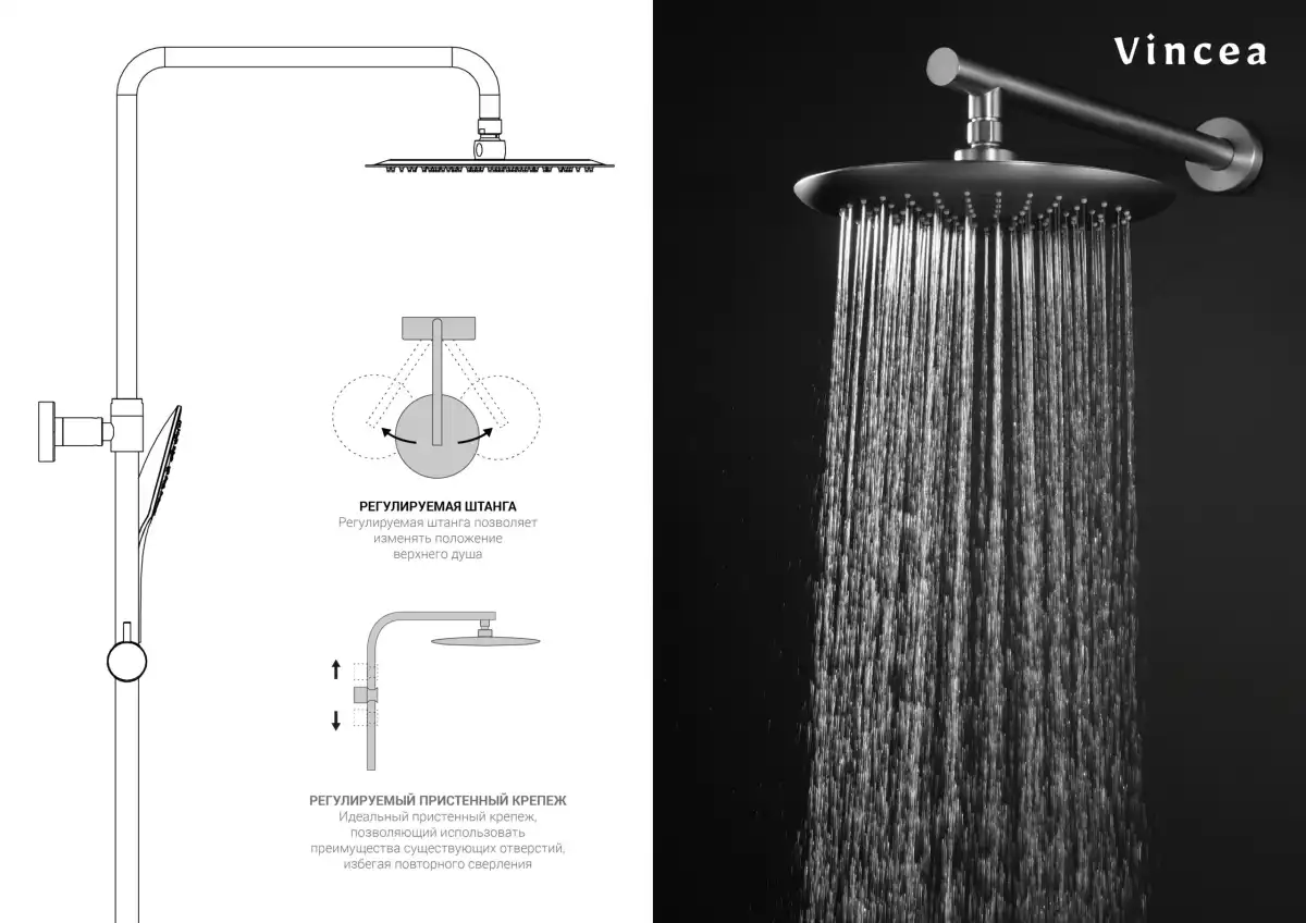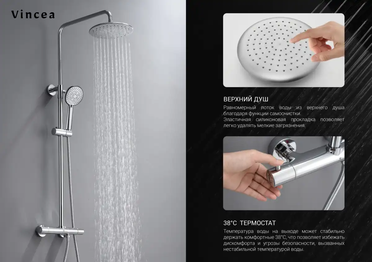 Vincea | Душевая стойка Esse VSFS-1E0TMB термостатическая, верхний душ из нержавеющей стали D25 черный.