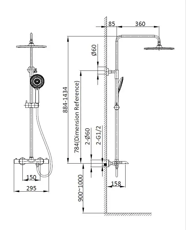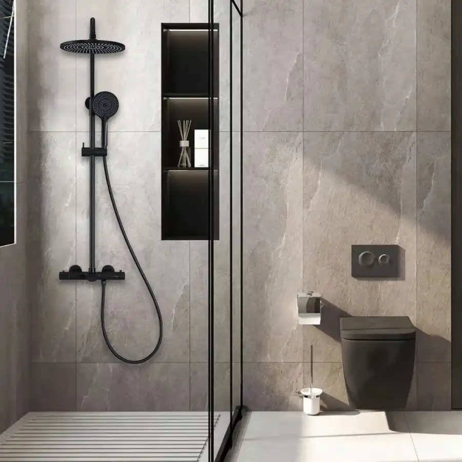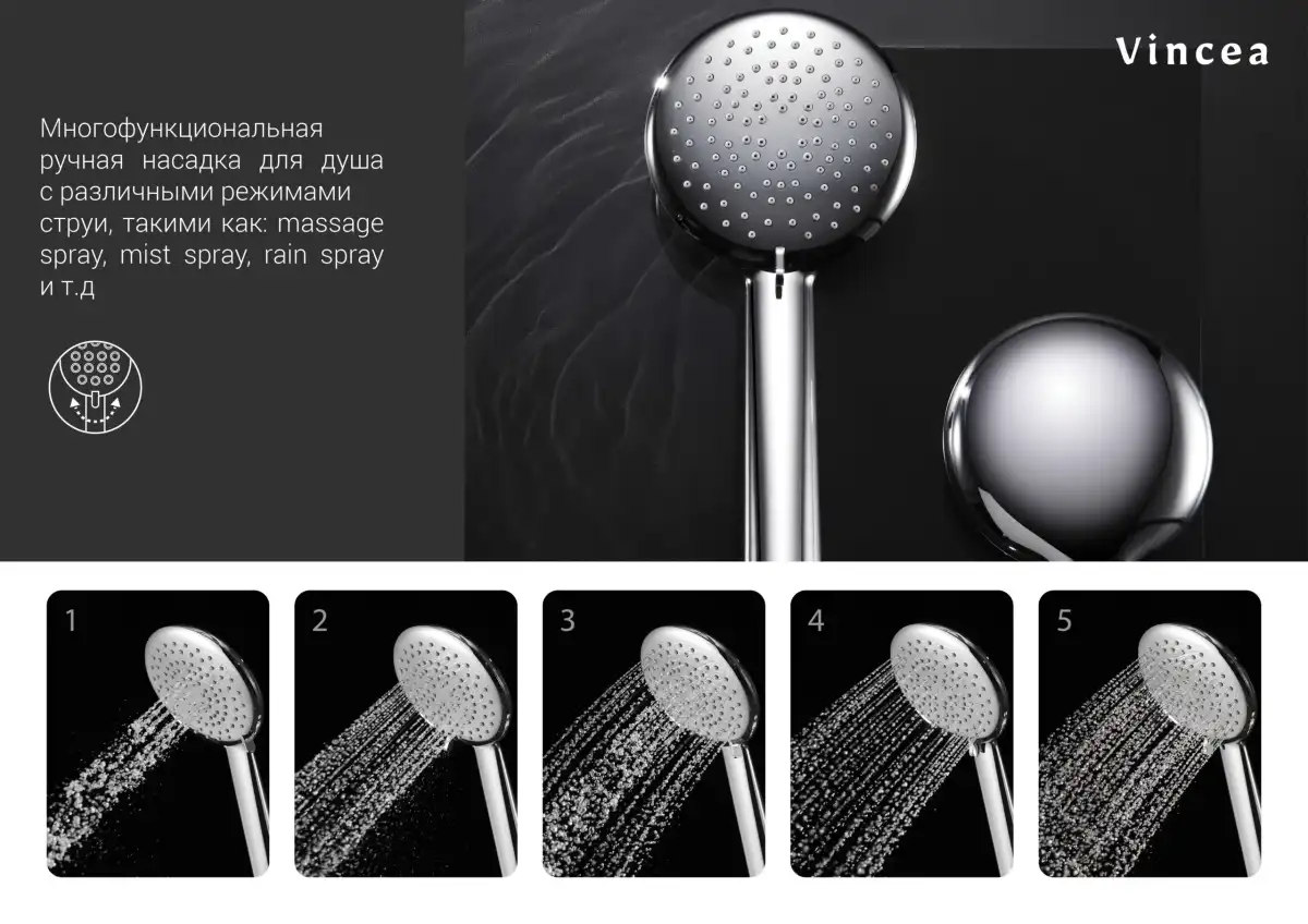 Vincea | Душевая стойка Esse VSFS-1E1TMB термостатическая, верхний душ из нержавеющей стали D25 черный.