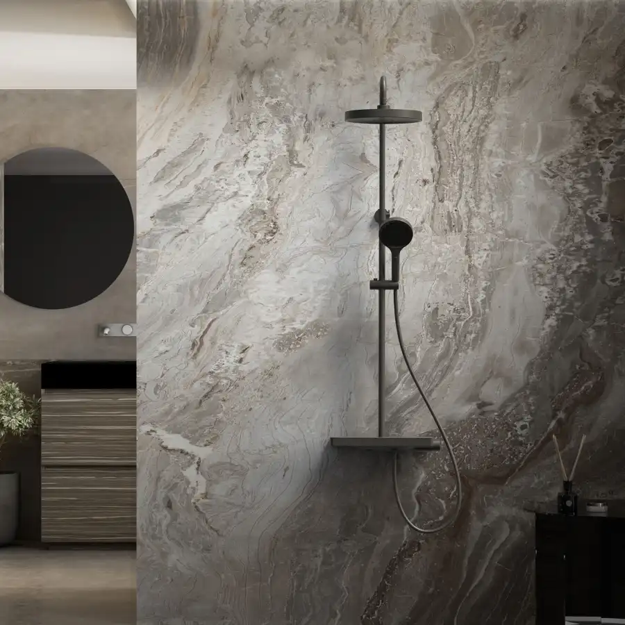 Vincea | Душевая стойка Inspire VSFS-3I12TMB термостатическая с изливом, верхний душ 30 см, черный.