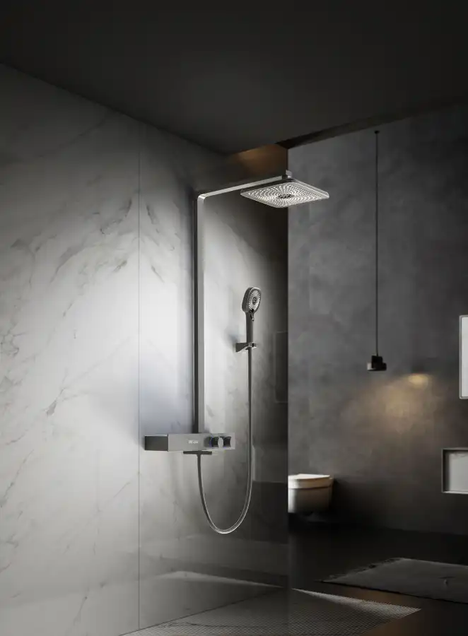 Vincea | Душевая стойка Inspire VSFS-3I13TGM термостатическая с изливом, вороненая сталь.